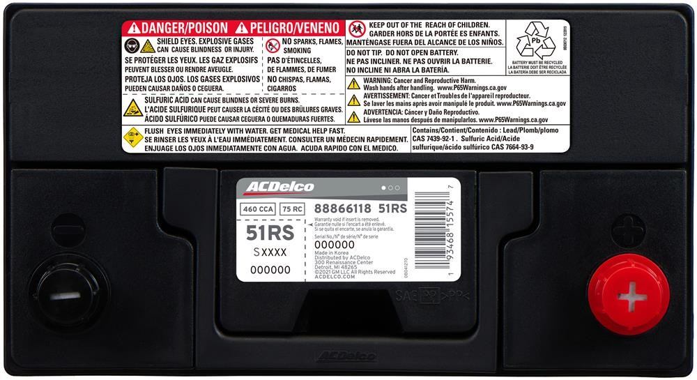 ACDelco Gold (Professional) Vehicle Batteries are a high quality alternative to Original Equipment (OE) parts. Featuring an impact- and break-resistant plastic case for durability, including robust separator envelopes, these auto batteries have corrosion-resistant terminals and no-maintenance design. Integral gas separators and flame arrestor vents help prevent possible damage from outside sparks. Premium technology in the metal alloys, chemicals, and design combine to help ensure long-life performance.ACDelco Gold (Professional) parts are manufactured to meet your expectations for fit, form, and function, making them a smart choice for General Motors vehicles, as well as most makes and models, including special applications. These high-quality parts are backed by General Motors. Some ACDelco Gold parts may have formerly appeared as ACDelco Professional. ⚠<b> PROPOSITION 65 WARNING:</b> Battery posts, terminals and related accessories contain lead and lead compounds, chemicals known to the state of California to cause cancer, birth defects and other reproductive harm. Batteries also contain other chemicals known to the state of California to cause cancer. Wash hands after handling. | Battery Asm
