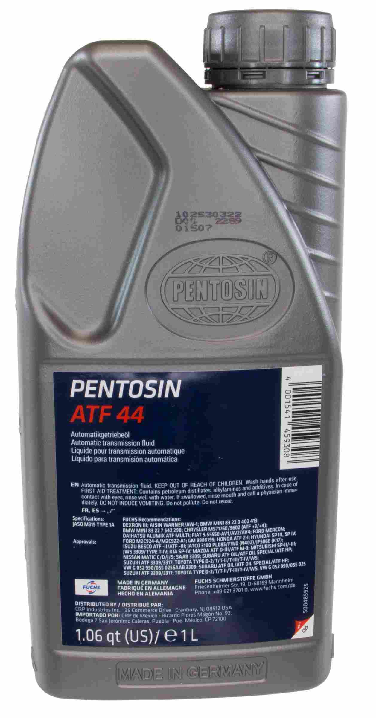 PENTOSIN ATF 44 FLUID for Asian Warner Transmissions Pentosin ATF 44 is miscible and compatible with conventional branded gear oils for AW transmissions. | PENTOSIN ATF 44 FLUID for Asian Warner Transmissions
