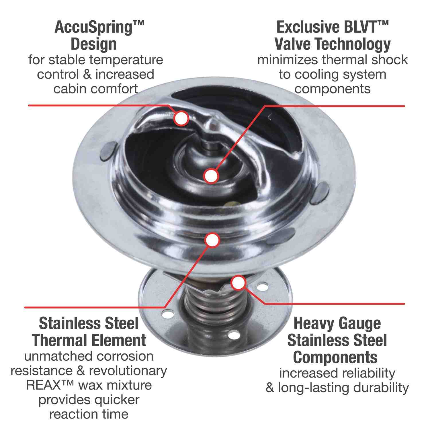 UltraStat Thermostat-187 Degrees UltraStat Thermostats are the toughest thermostats on the market. All heavy gauge stainless steel construction provides long-life durability, as well as complete corrosion resitance. Exclusive BLVT Valve technology minimizes thermal shock to cooling system components. | UltraStat Thermostat-187 Degrees